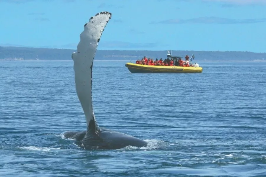 Croisière d’observation des baleines en bateau : À bord d’un bateau tout confort spécialement conçu pour l’observation des mammifères marins, prenez la mer accompagnés de guides-naturalistes bilingues pour en apprendre davantage sur les géants de la mer et le Parc marin du Saguenay–Saint-Laurent. Partez à la rencontre des baleines du St Laurent et soyez émerveillés par le spectacle