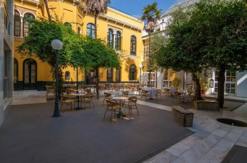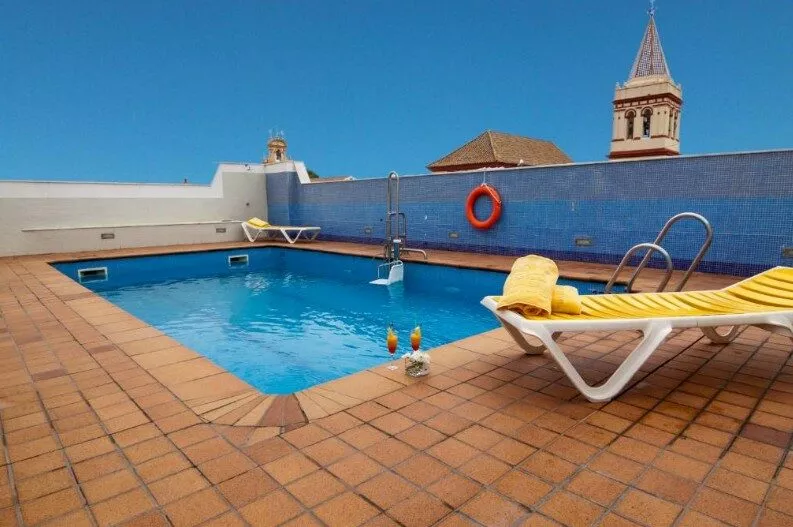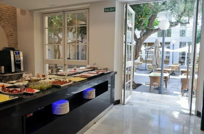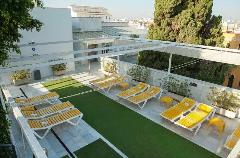 Parmi les équipements, on retrouve une piscine extérieure sur le toit, une réception ouverte 24h/24, une connexion Wi-Fi gratuite et des salles de réunion. Les espaces communs, décorés dans un style typique andalou, offrent un cadre chaleureux.